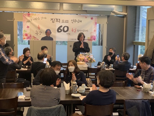 구로3동 보좌 정혁요셉신부님 환갑 및 축일 페이지 정보 작성자 최고관리자 작성일22-03-20 21:30 조회2,268회 댓글0건 관련링크 이전글 다음글 목록 본문 모든 신자분들과 함께 축하 하는 자리를 만들지는 못하였지만 사목위원분들과 조촐히 축하자리를 마련해 드렸습니다 정혁신부님의 영육간의 건강을 위해 기도 부탁드립니다. 댓글목록 등록된 댓글이 없습니다. 이전글 다음글 목록